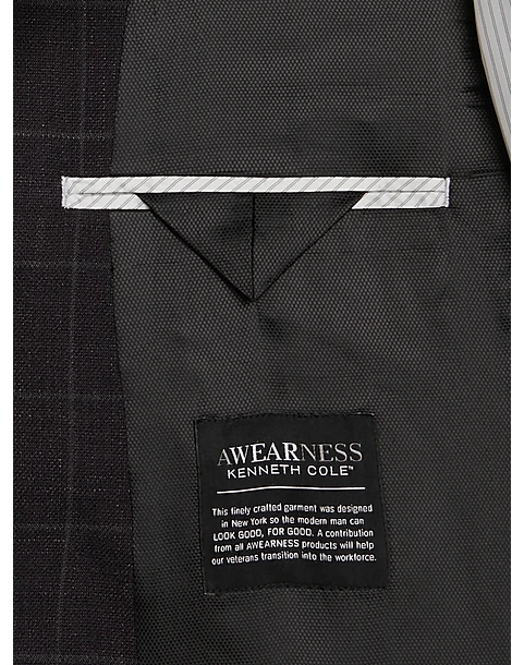 - 64% polyester 35% viscose 1% spandex|Two button|Notch lapel|Flap pockets|Side vents|3/8 lined|Modern Fit|Awearness Kenneth Cole|