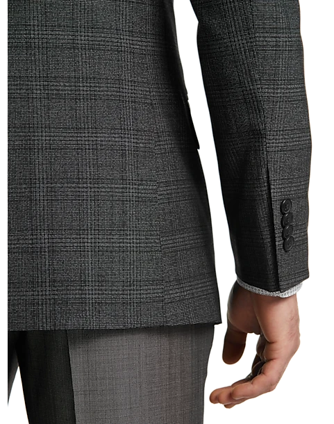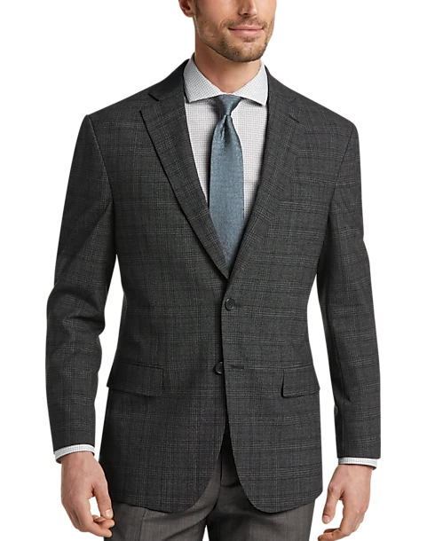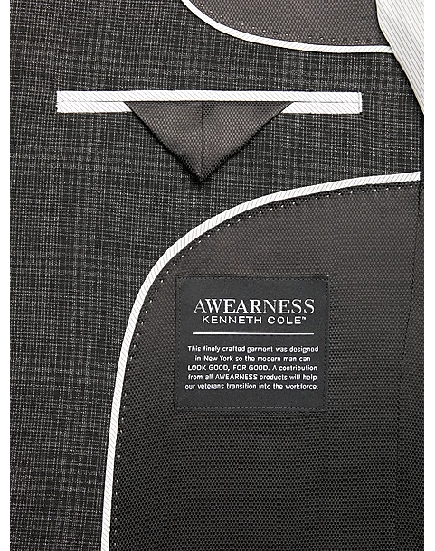 This lightweight sport coat by Awearness, Kenneth Cole has a rich, dark charcoal plaid pattern woven in a lightly textured wool blend. The fabric has a touch of stretch for ease of movement and a great fit.
