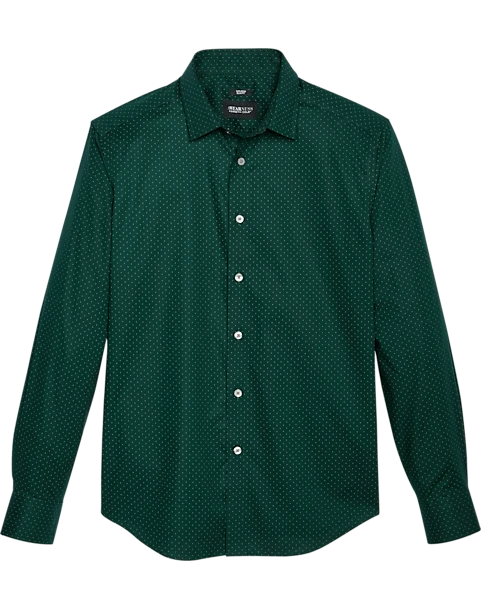 Look your best in this rich, dark green shirt by Awearness Kenneth Cole featuring a dot pattern, spread collar, and trim, Slim Fit