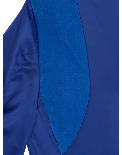 The elongated shape of the black peak lapel on this dinner jacket from Egara packs plenty of punch. Bold and stylish, the coat is rendered in an electric blue hue and features piped pocket edges and covered buttons.