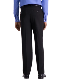 - 97% polyester 3% other fibers|Built-in stretch for comfort|Two button|Notch lapel|Side vents|Classic Fit|Haggar Active Series&trade|