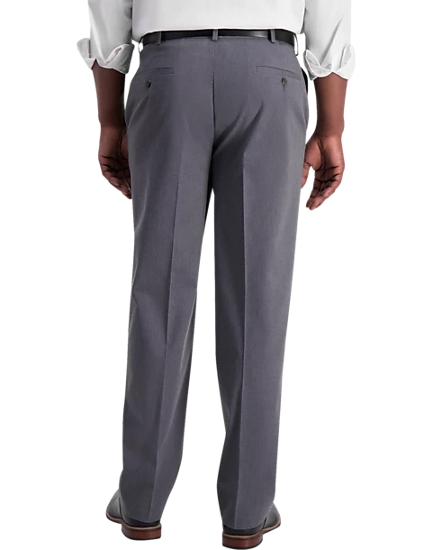 A revolutionary casual pant that checks all the boxes of comfort and style. Fabric blend includes 59% Cotton, 39% Polyester, 2% Elastane for stretch and recovery. The Haggar Iron Free Premium Pant features a permanent center crease, off seam front pockets and single welt back pockets. The flat front, classic fit silhouette offers a hidden expandable waistband to provide the ultimate comfort.