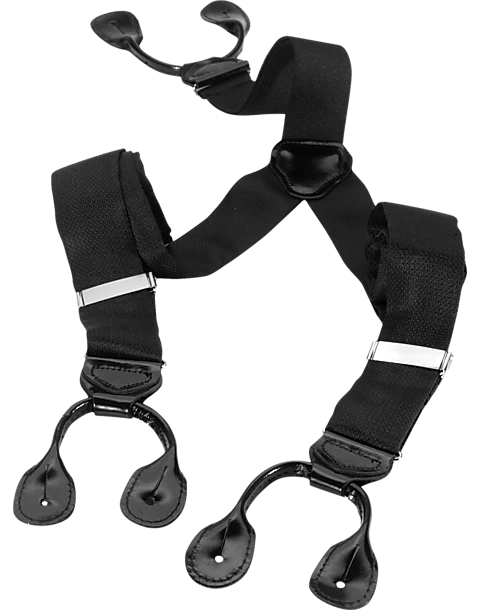 These black silk tuxedo braces will offer comfortable support to any pair of tuxedo slacks. Because tuxedo pants do not accommodate a belt these fine silk braces are the perfect option for completing your formal outfit.