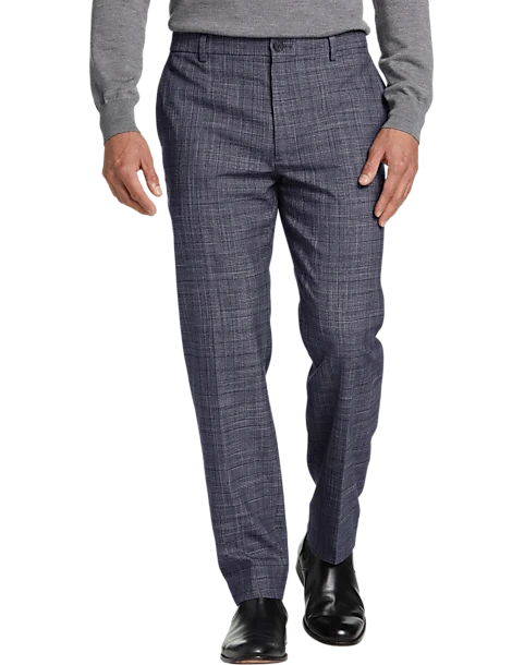 Tailored from comfortable, move-with-you fabric with a touch of stretch, these dress trousers from Michael Strahan feature a subtle navy plaid pattern, flat front, and flattering Modern Fit.