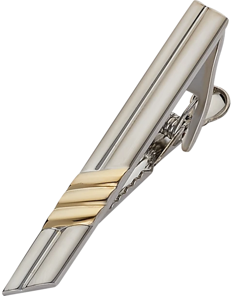 Used to fasten a tie to a dress shirt, this tie bar features a polished gray- and gold-tone modern design.