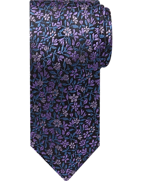 Handcrafted in fine silk, this Pronto Uomo narrow tie has an ornate floral pattern with a lustrous finish.